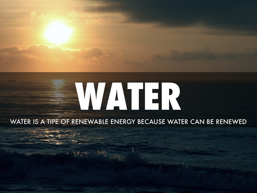 WATER IS A TIPE OF RENEWABLE ENERGY BECAUSE WATER CAN BE RENEWED