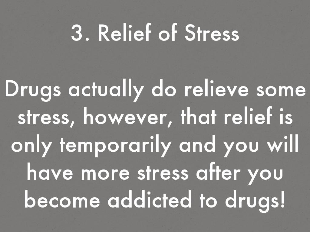Drugs actually do relieve some stress, however, that relief is only temporarily and you will have more stress after you become addicted to drugs!