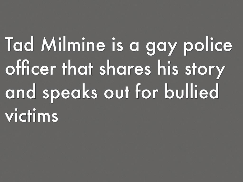 Tad Milmine is a gay police officer that shares his story and speaks out for bullied victims