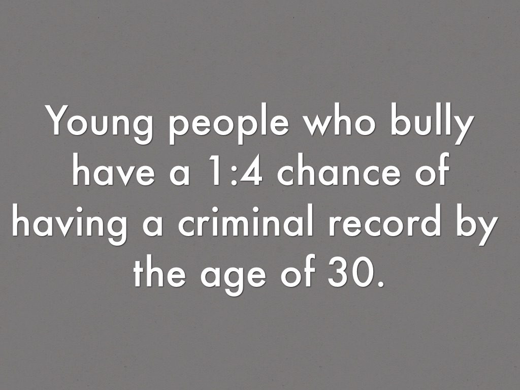Young people who bully have a 1:4 chance of having a criminal record by the age of 30.