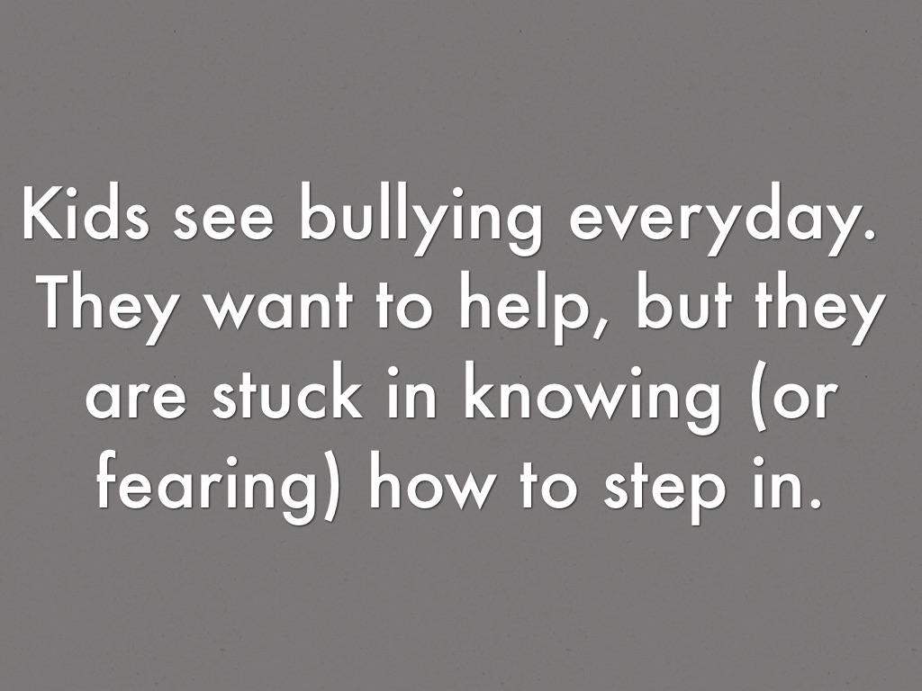 Kids see bullying everyday. They want to help, but they are stuck in knowing (or fearing) how to step in.