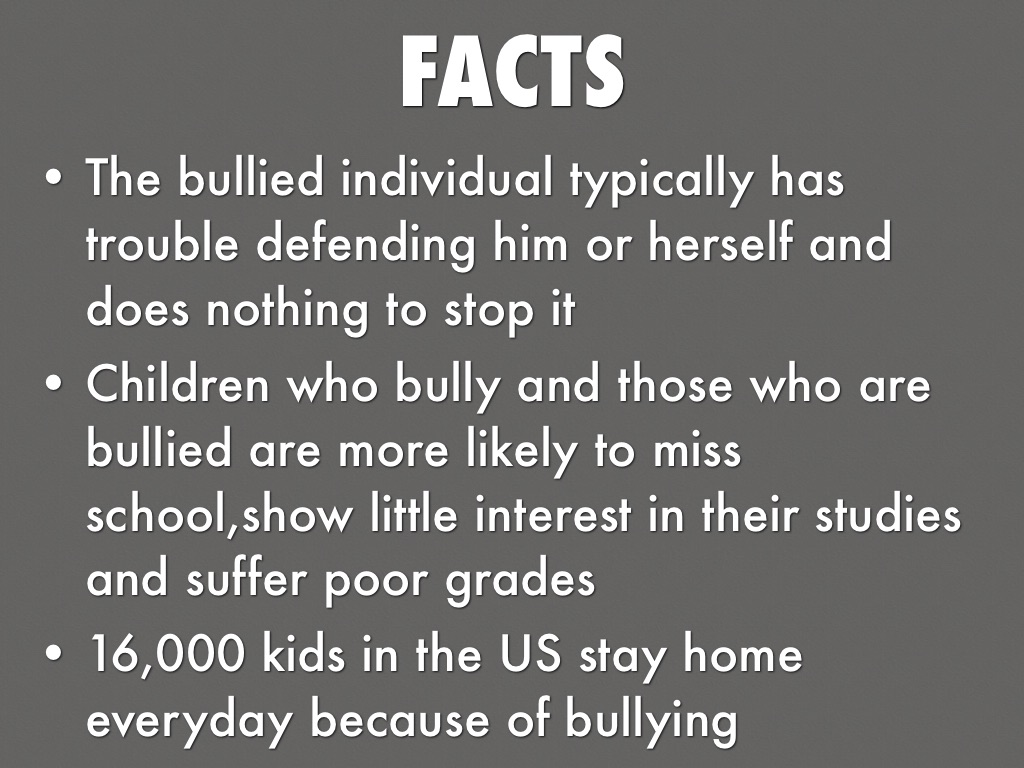 - Children who bully and those who are bullied are more likely to miss school,show little interest in their studies and suffer poor grades