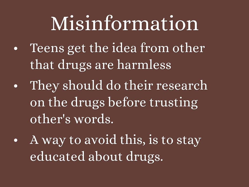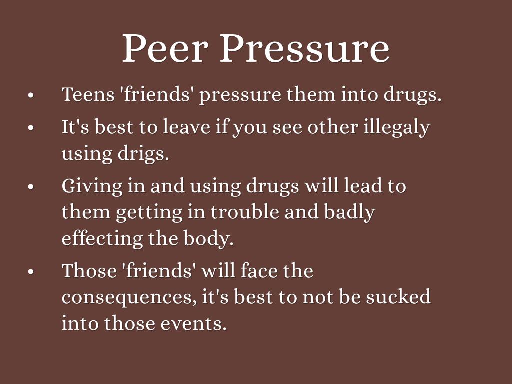 Giving in and using drugs will lead to them getting in trouble and badly effecting the body.