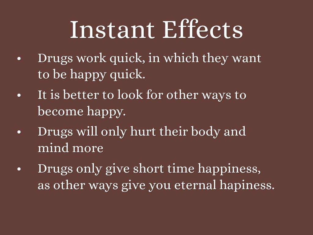 Drugs only give short time happiness, as other ways give you eternal hapiness.