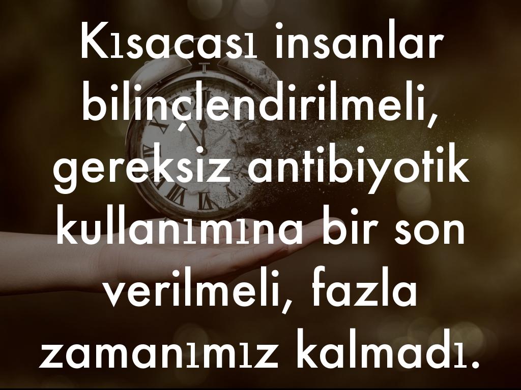 Kısacası insanlar bilinçlendirilmeli, gereksiz antibiyotik kullanımına bir son verilmeli, fazla zamanımız kalmadı.