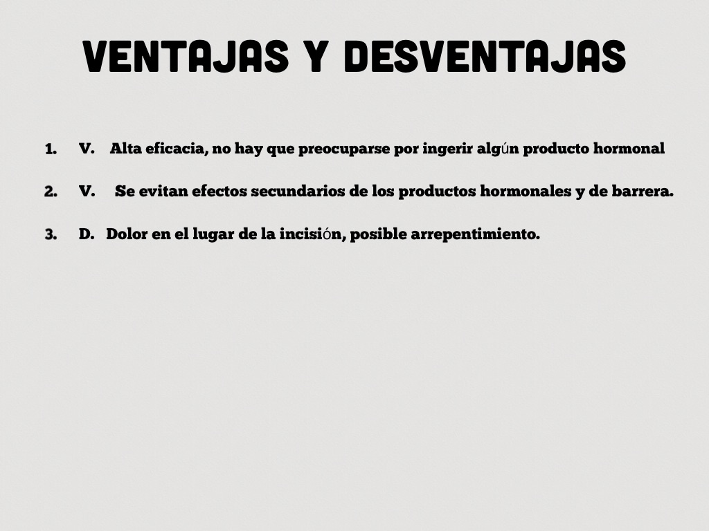 • V. Se evitan efectos secundarios de los productos hormonales y de barrera.
