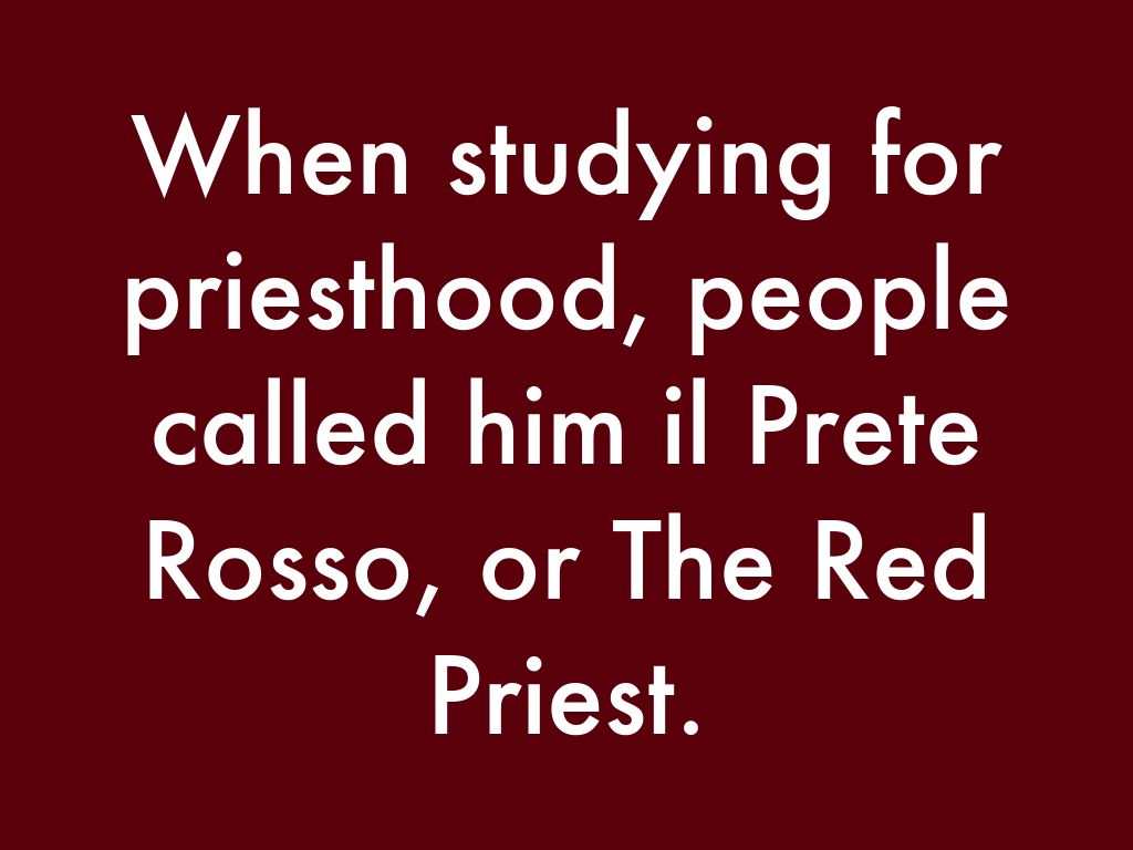 When studying for priesthood, people called him il Prete Rosso, or The Red Priest.