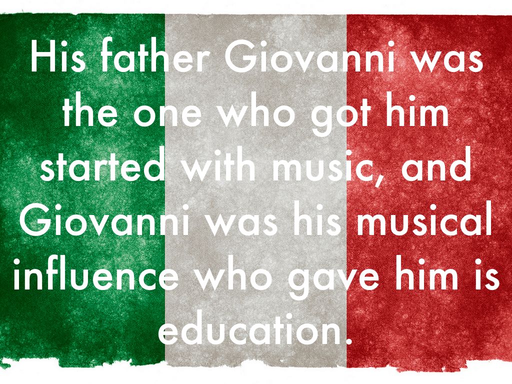 His father Giovanni was the one who got him started with music, and Giovanni was his musical influence who gave him is education.