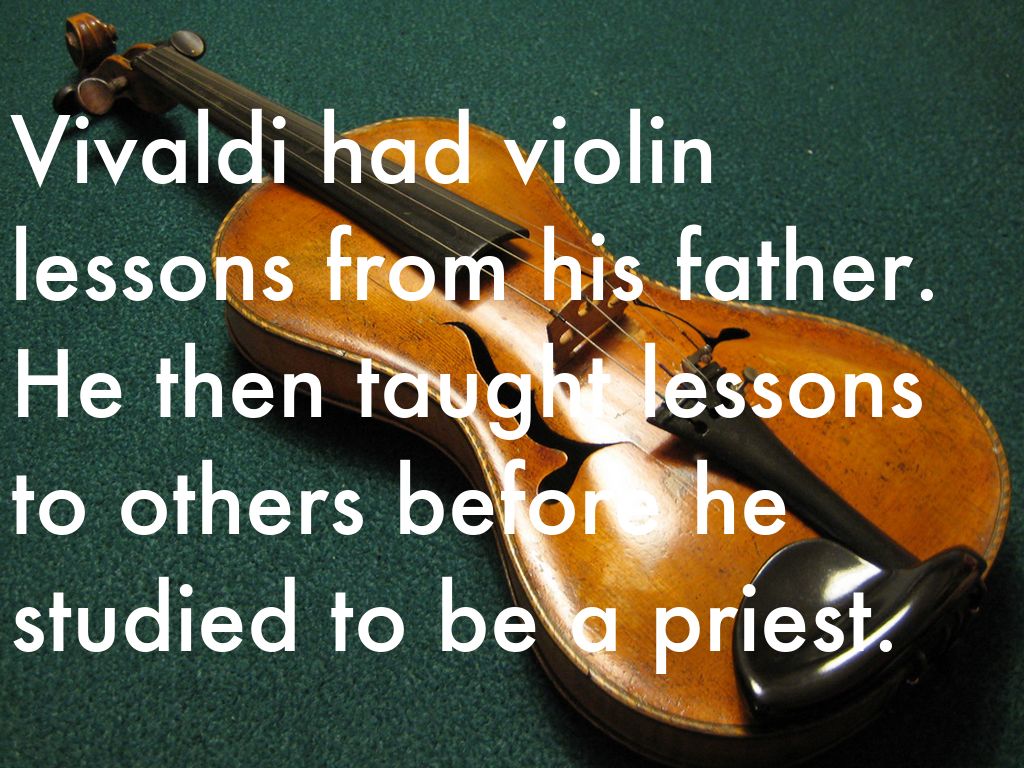Vivaldi had violin lessons from his father. He then taught lessons to others before he studied to be a priest.