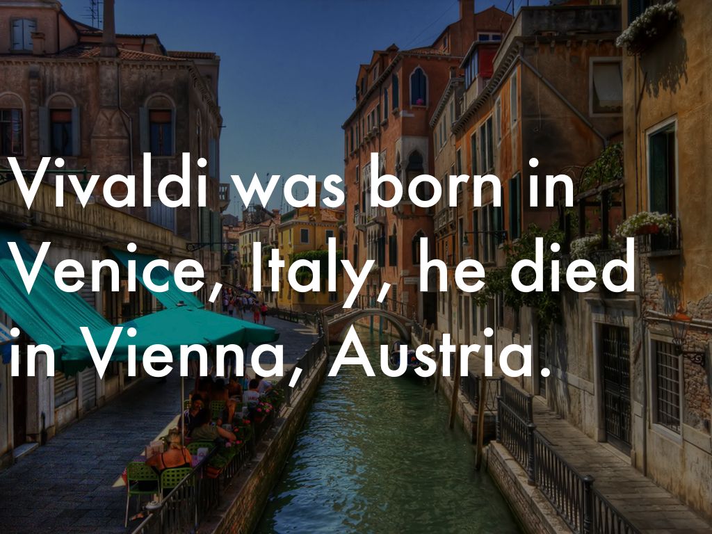 Vivaldi was born in Venice, Italy, he died in Vienna, Austria.