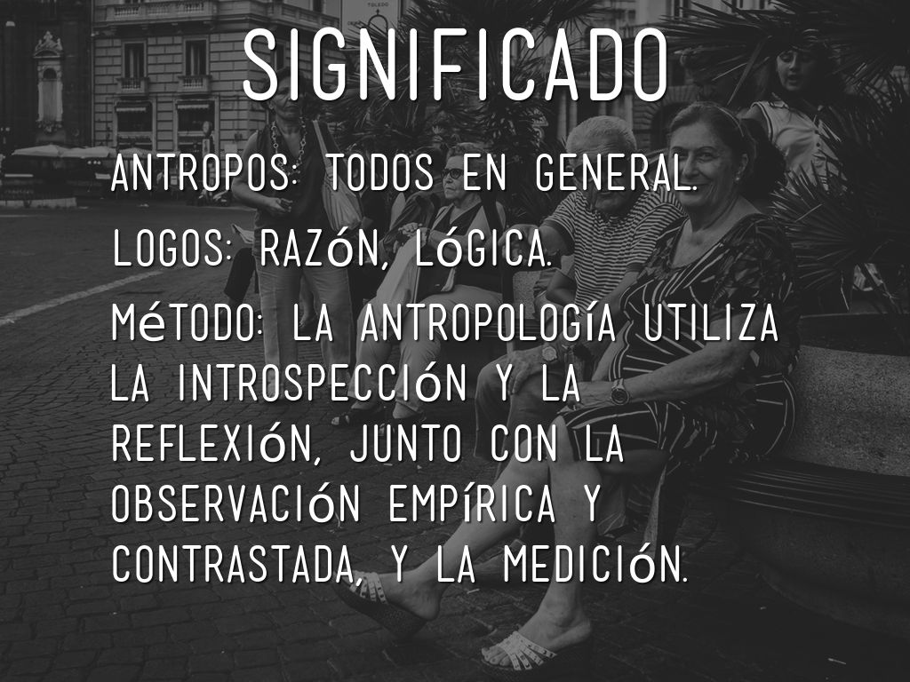 Método: La antropología utiliza la introspección y la reflexión, junto con la observación empírica y contrastada, y la medición.