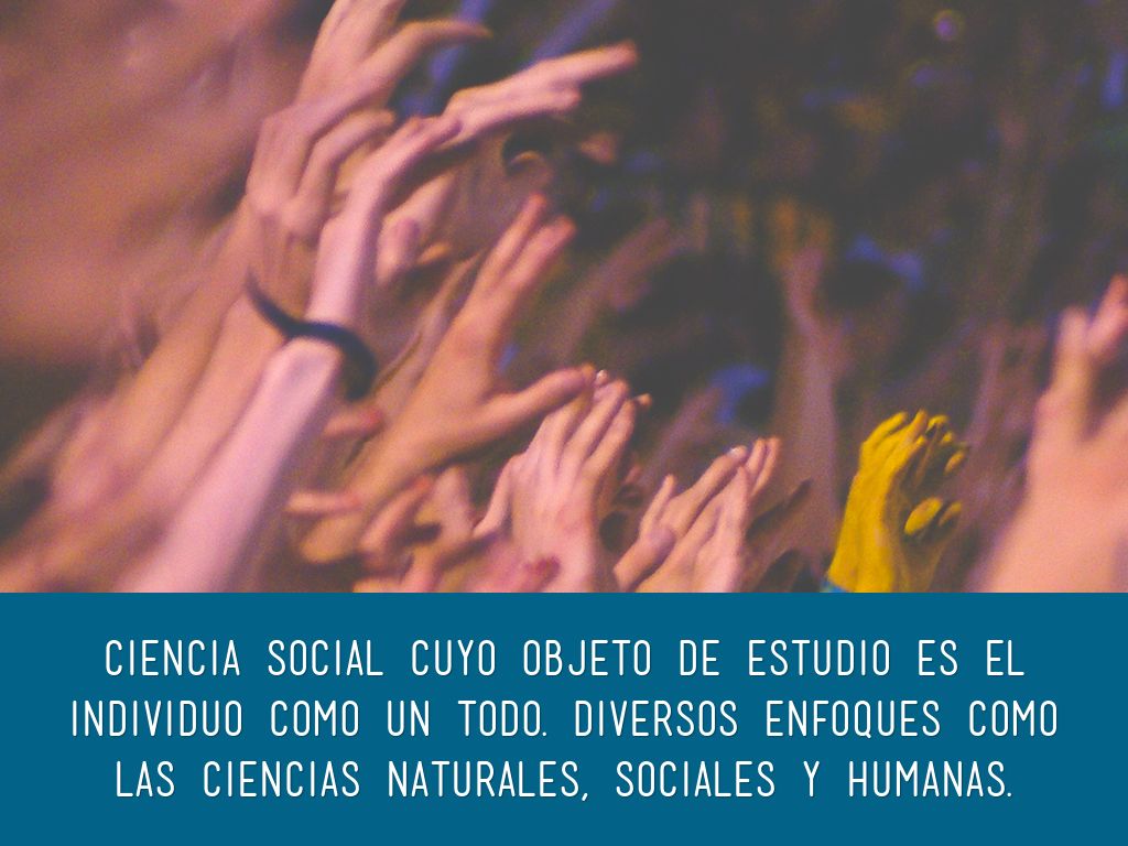 Ciencia social cuyo objeto de estudio es el individuo como un todo. Diversos enfoques como las ciencias naturales, sociales y humanas.