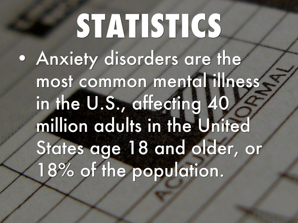 Anxiety disorders are the most common mental illness in the U.S., affecting 40 million adults in the United States age 18 and older, or 18% of the population.