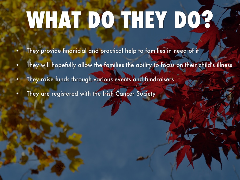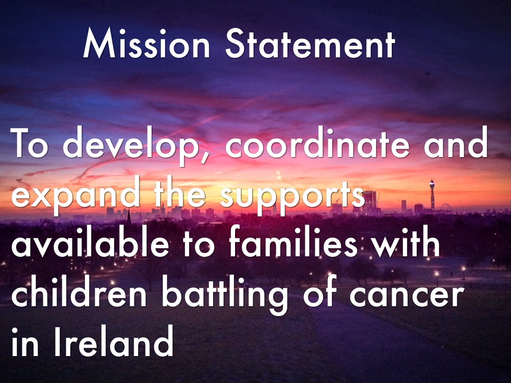 To develop, coordinate and expand the supports available to families with children battling of cancer in Ireland