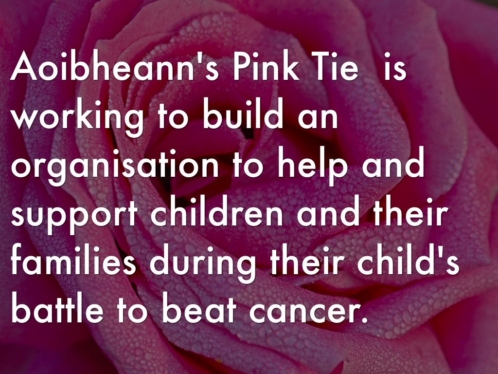 Aoibheann's Pink Tie is working to build an organisation to help and support children and their families during their child's battle to beat cancer.