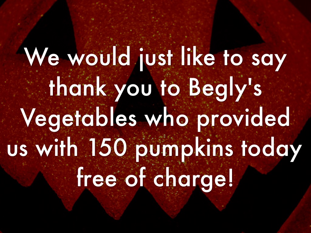 We would just like to say thank you to Begly's Vegetables who provided us with 150 pumpkins today free of charge!