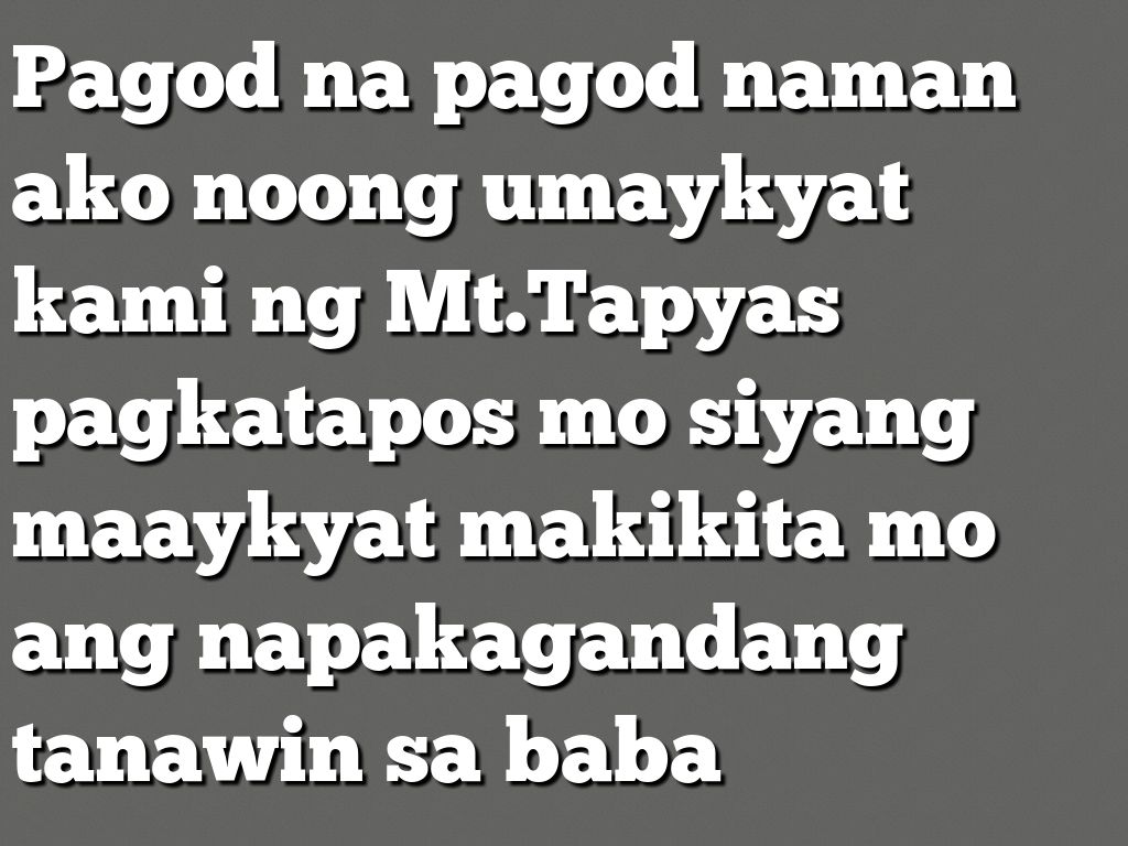 Pagod na pagod naman ako noong umaykyat kami ng Mt.Tapyas pagkatapos mo siyang maaykyat makikita mo ang napakagandang tanawin sa baba