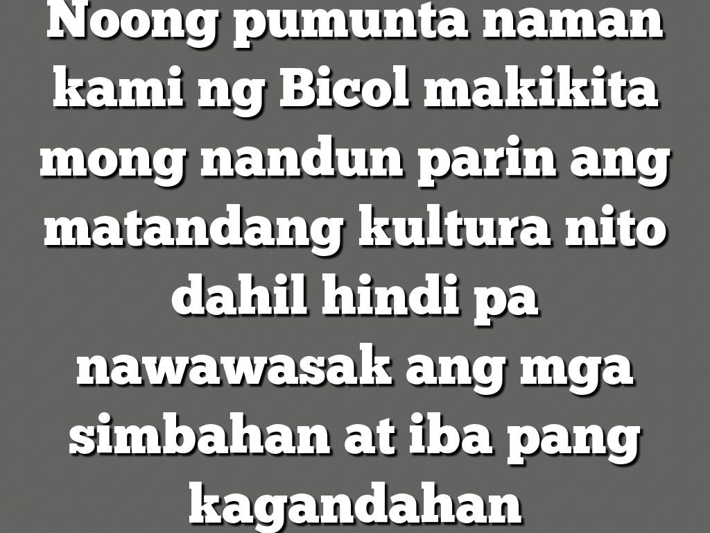 Noong pumunta naman kami ng Bicol makikita mong nandun parin ang matandang kultura nito dahil hindi pa nawawasak ang mga simbahan at iba pang kagandahan
