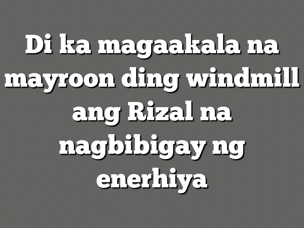 Di ka magaakala na mayroon ding windmill ang Rizal na nagbibigay ng enerhiya