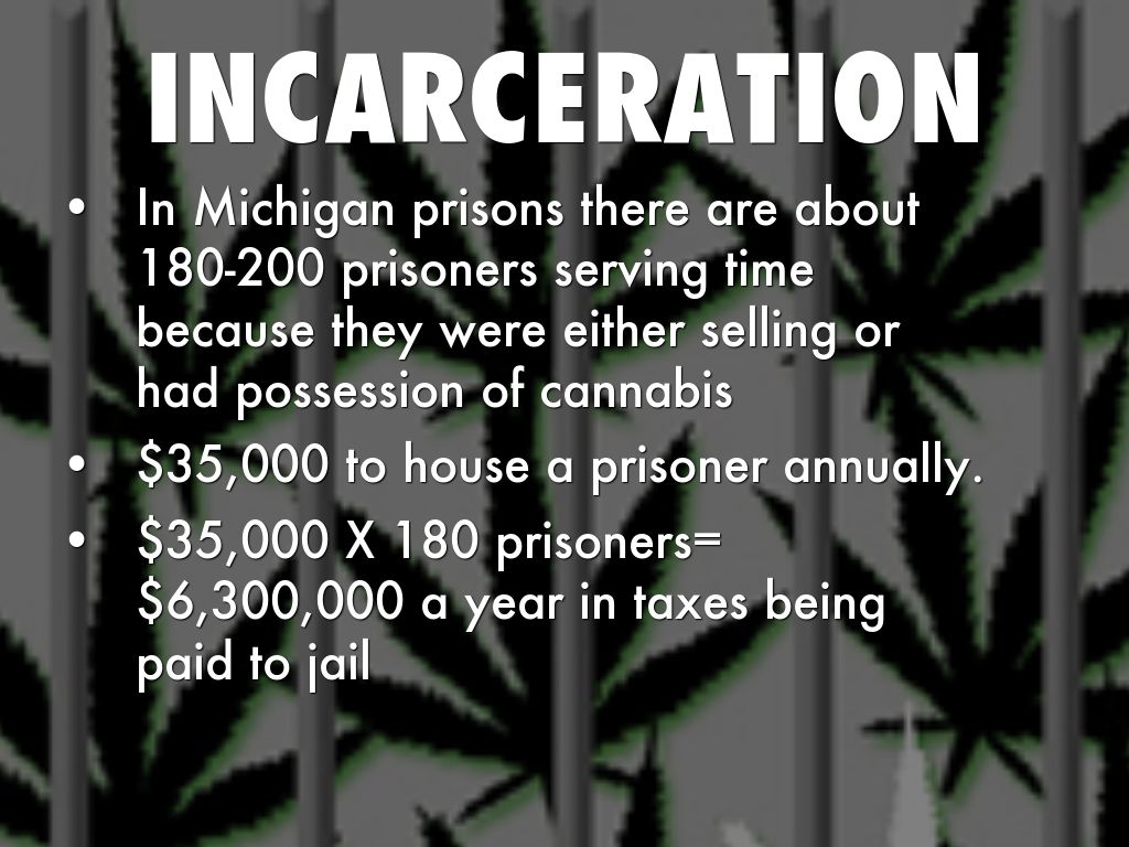 In Michigan prisons there are about 180-200 prisoners serving time because they were either selling or had possession of cannabis