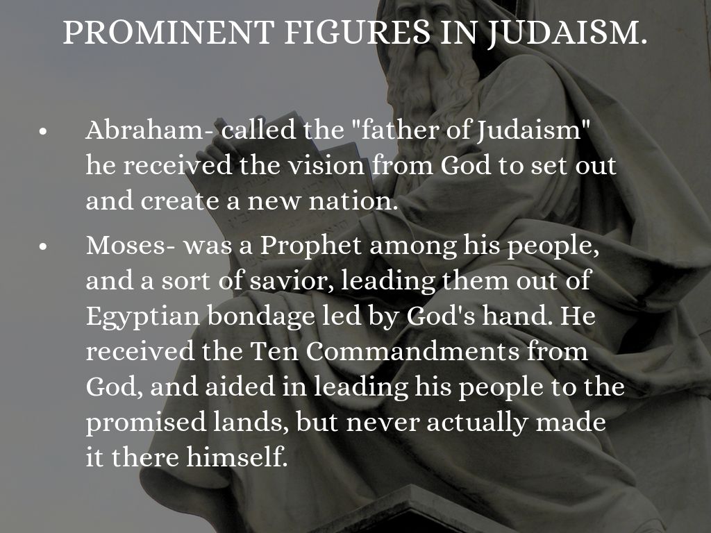 Abraham- called the "father of Judaism" he received the vision from God to set out and create a new nation.