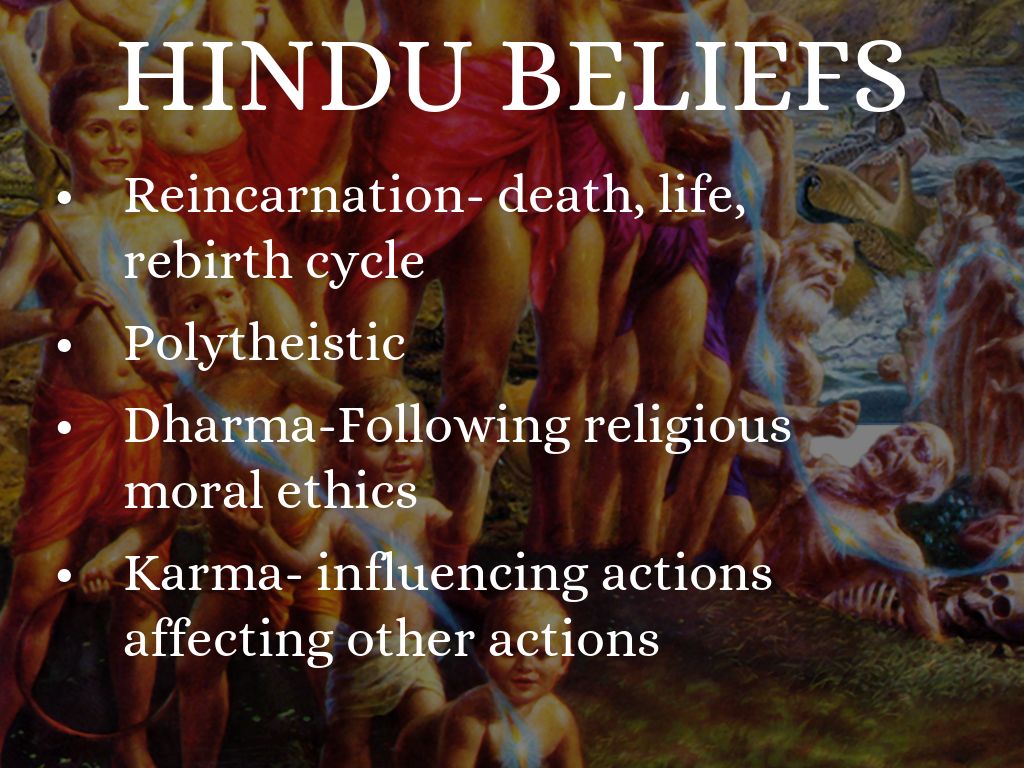 A religious group, called the Aryans brought their ideas about philosophy and beliefs to the Indus Valley, making it the birthplace of Hinduism. Hinduism does not have a singular founder or primary holy figure. Instead, there are many aspects to the gods they worship and texts that the Hindus believe in.
