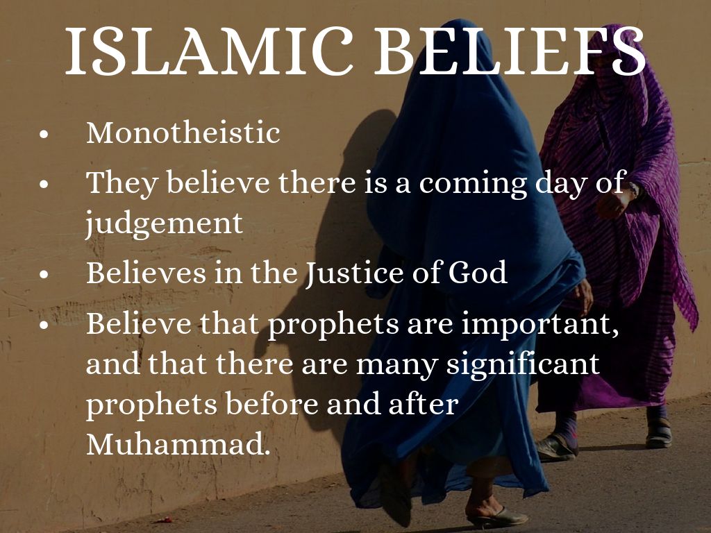 Islam is based on "THE FIVE PILLARS" "Shahada" to say your belief in God, and the works of Muhammad "Salat" Praying five times a day (dawn, noon, afternoon, sunset and evening); Zakat: to give charity to those in need; "Sawn" a fast preformed to show control during one month "Haj" Traveling to Mecca at least once in your lifetime