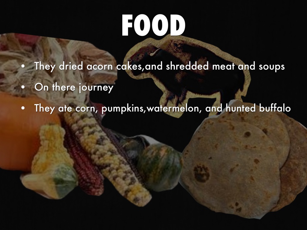 They ate corn, pumpkins,watermelon, and hunted buffalo