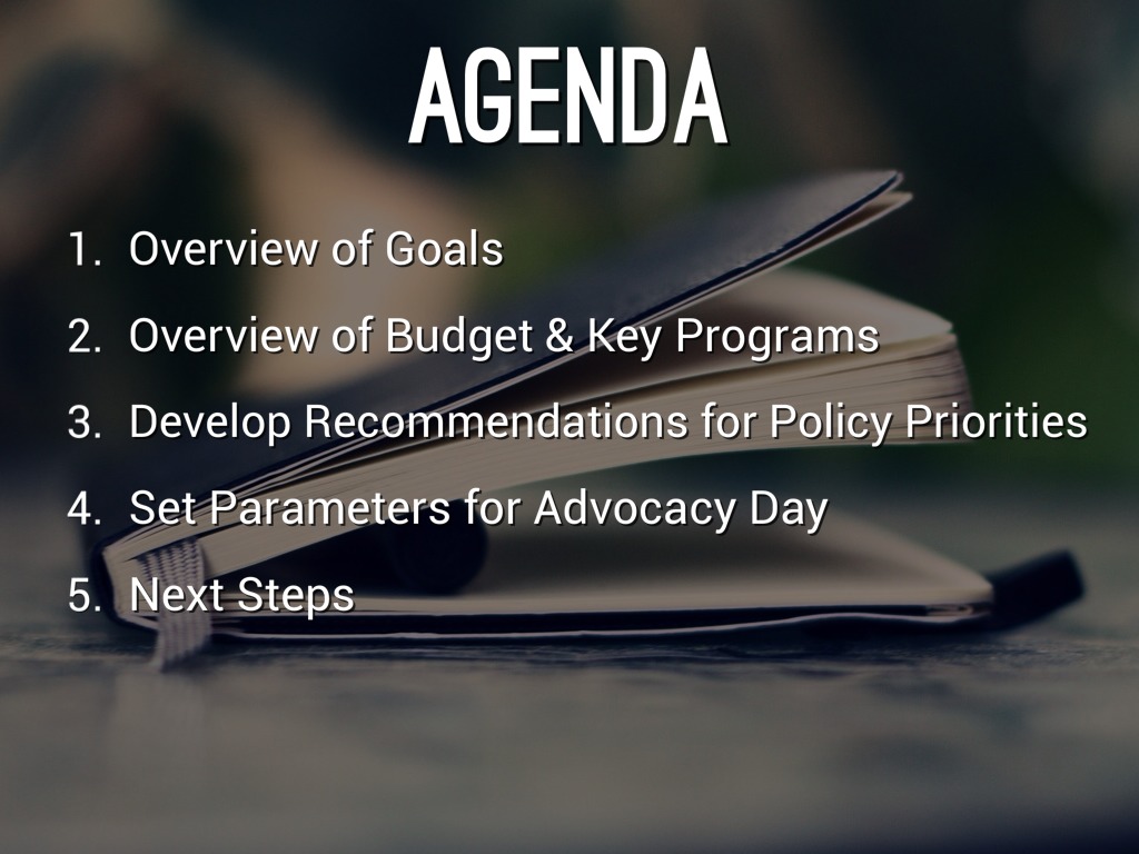 • Establish parameters for Advocacy Day