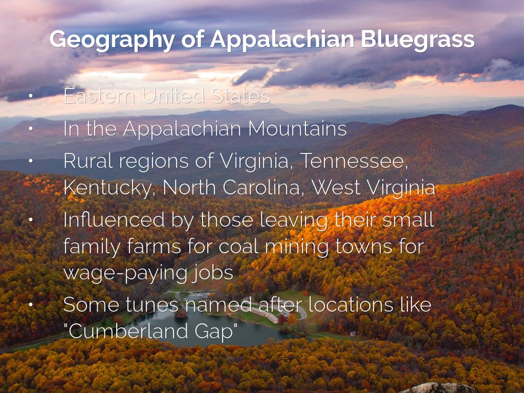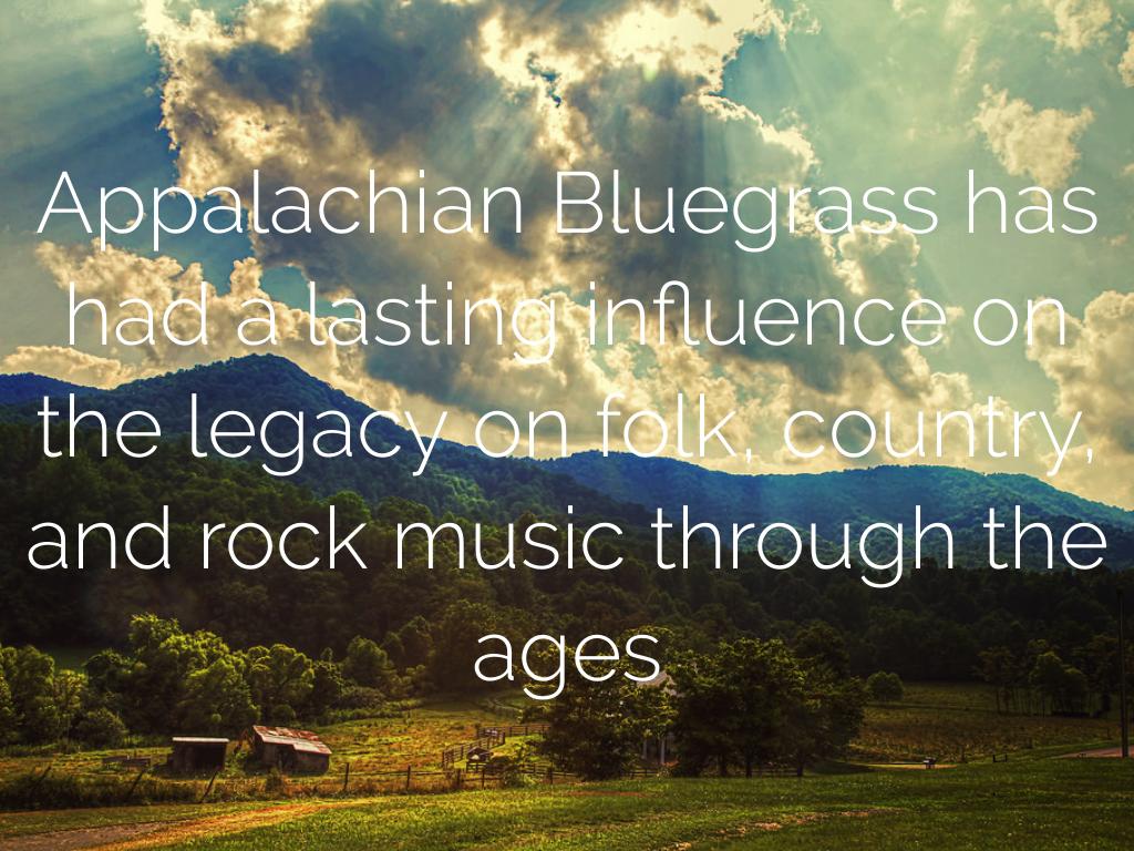 Appalachian Bluegrass has had a lasting influence on the legacy on folk, country, and rock music through the ages
