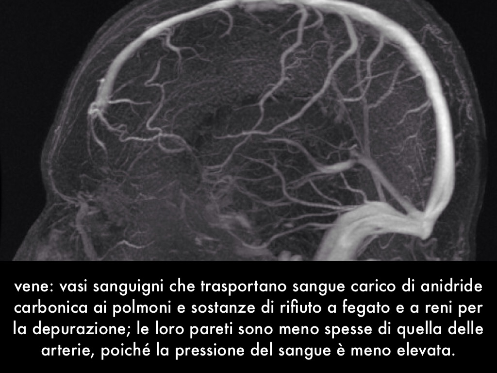 vene: vasi sanguigni che trasportano sangue carico di anidride carbonica ai polmoni e sostanze di rifiuto a fegato e a reni per la depurazione; le loro pareti sono meno spesse di quella delle arterie, poiché la pressione del sangue è meno elevata.