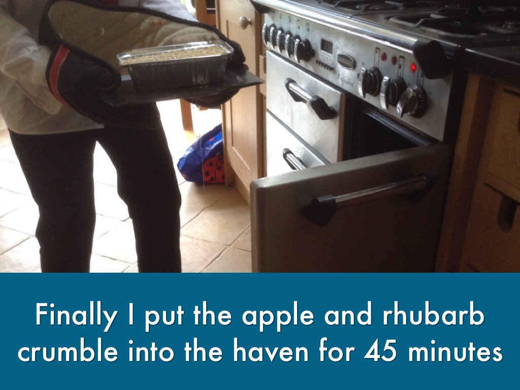 Finally I put the apple and rhubarb crumble into the haven for 45 minutes