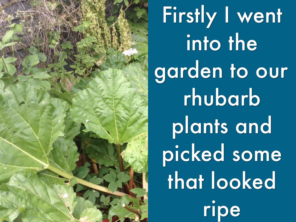 Firstly I went into the garden to our rhubarb plants and picked some that looked ripe