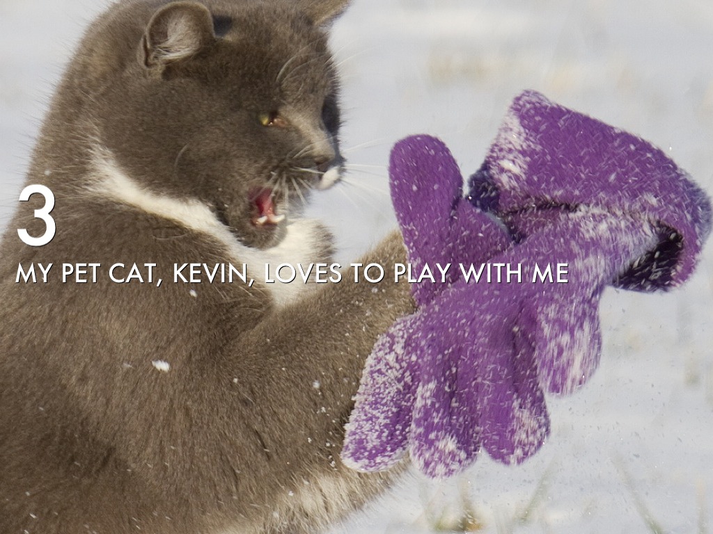 MY PET CAT, KEVIN, LOVES TO PLAY WITH ME