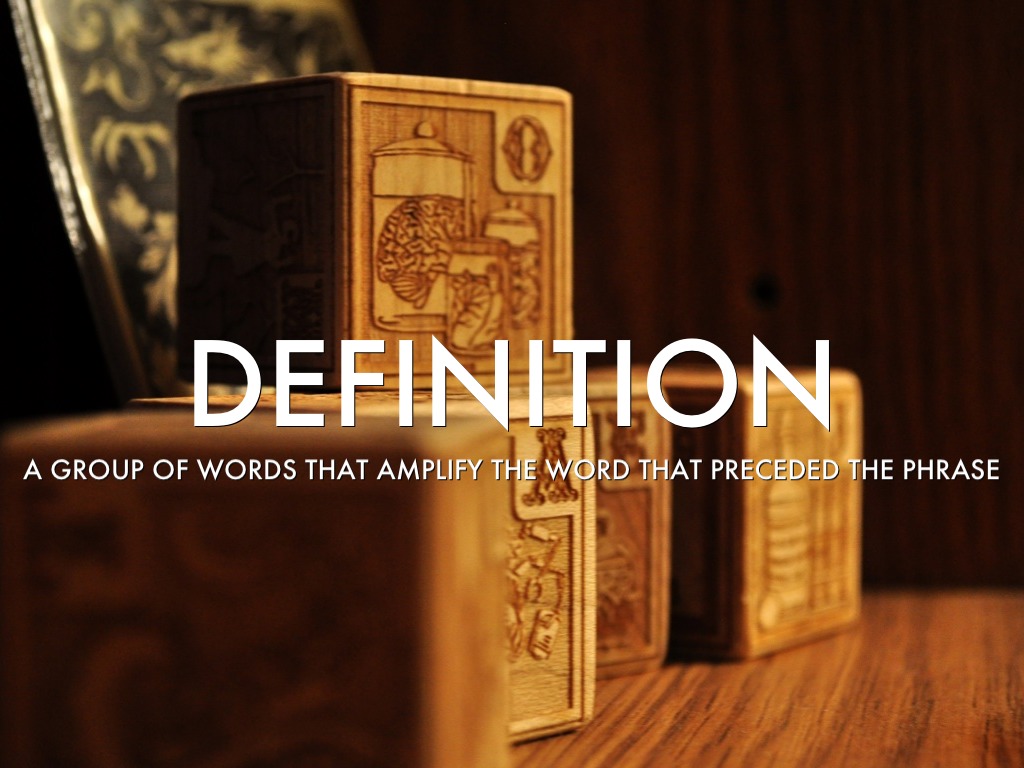 A GROUP OF WORDS THAT AMPLIFY THE WORD THAT PRECEDED THE PHRASE