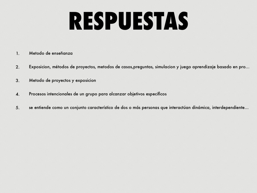 • Exposicion, métodos de proyectos, metodos de casos,preguntas, simulacion y juego aprendizaje basado en problemas, juego de roles, panel de discusión y lluvia de ideas