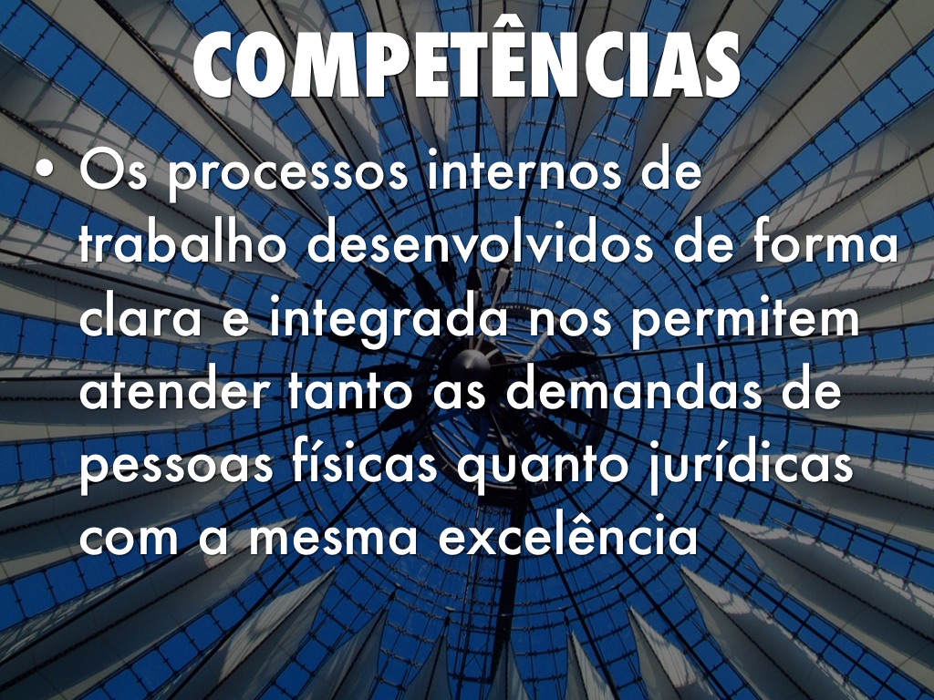 Os processos internos de trabalho desenvolvidos de forma clara e integrada nos permitem atender tanto as demandas de pessoas físicas quanto jurídicas com a mesma excelência