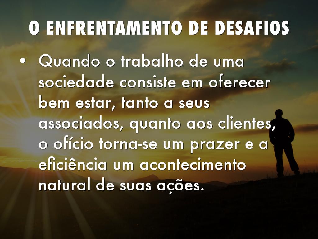 Quando o trabalho de uma sociedade consiste em oferecer bem estar, tanto a seus associados, quanto aos clientes, o ofício torna-se um prazer e a eficiência um acontecimento natural de suas ações.