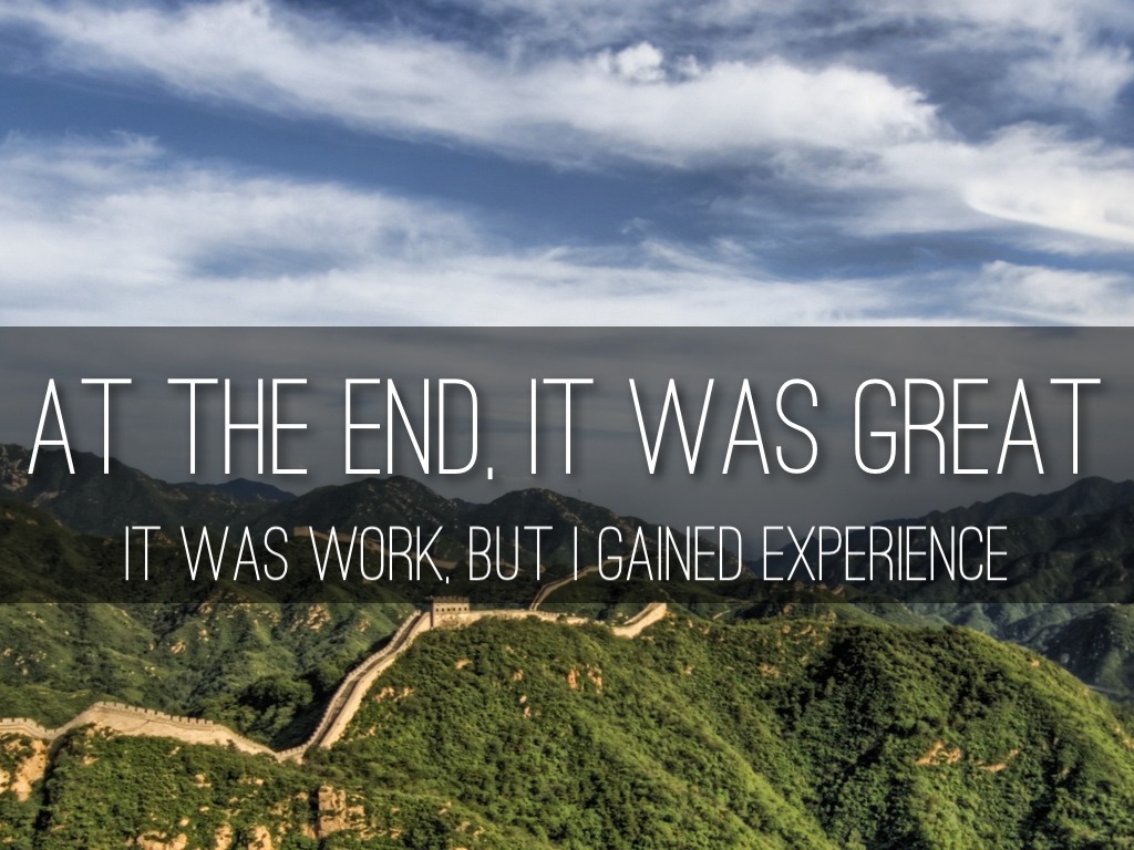 IT WAS WORK, BUT I GAINED EXPERIENCE