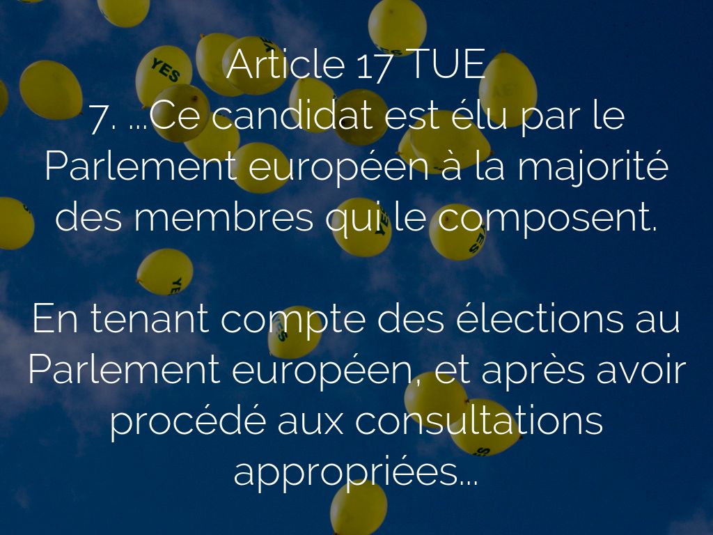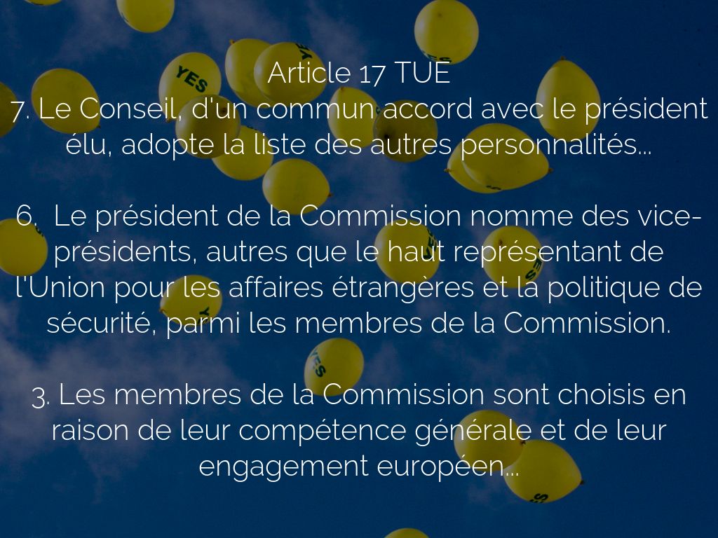 Article 17 TUE 7. Le Conseil, d'un commun accord avec le président élu, adopte la liste des autres personnalités...