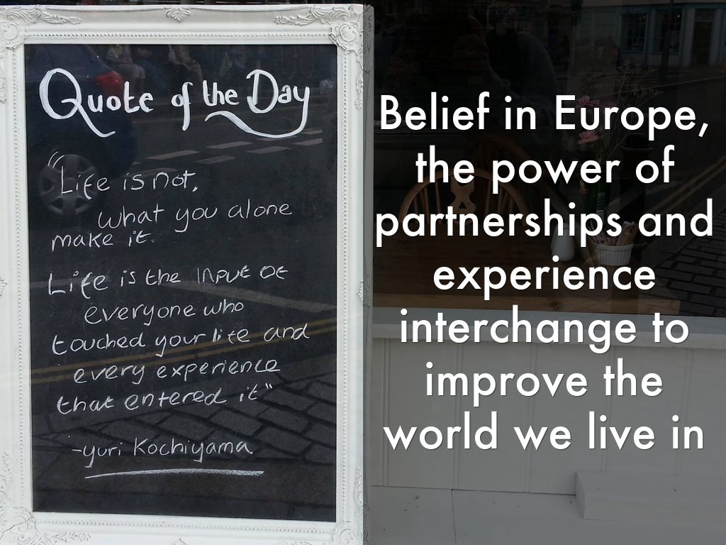Belief in Europe, the power of partnerships and experience interchange to improve the world we live in