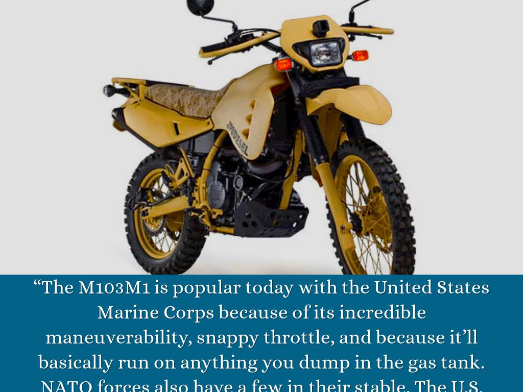“The M103M1 is popular today with the United States Marine Corps because of its incredible maneuverability, snappy throttle, and because it’ll basically run on anything you dump in the gas tank. NATO forces also have a few in their stable. The U.S. Air Force and Army have similar models, the M1030B1 and the M1030, but neither can run on diesel.”