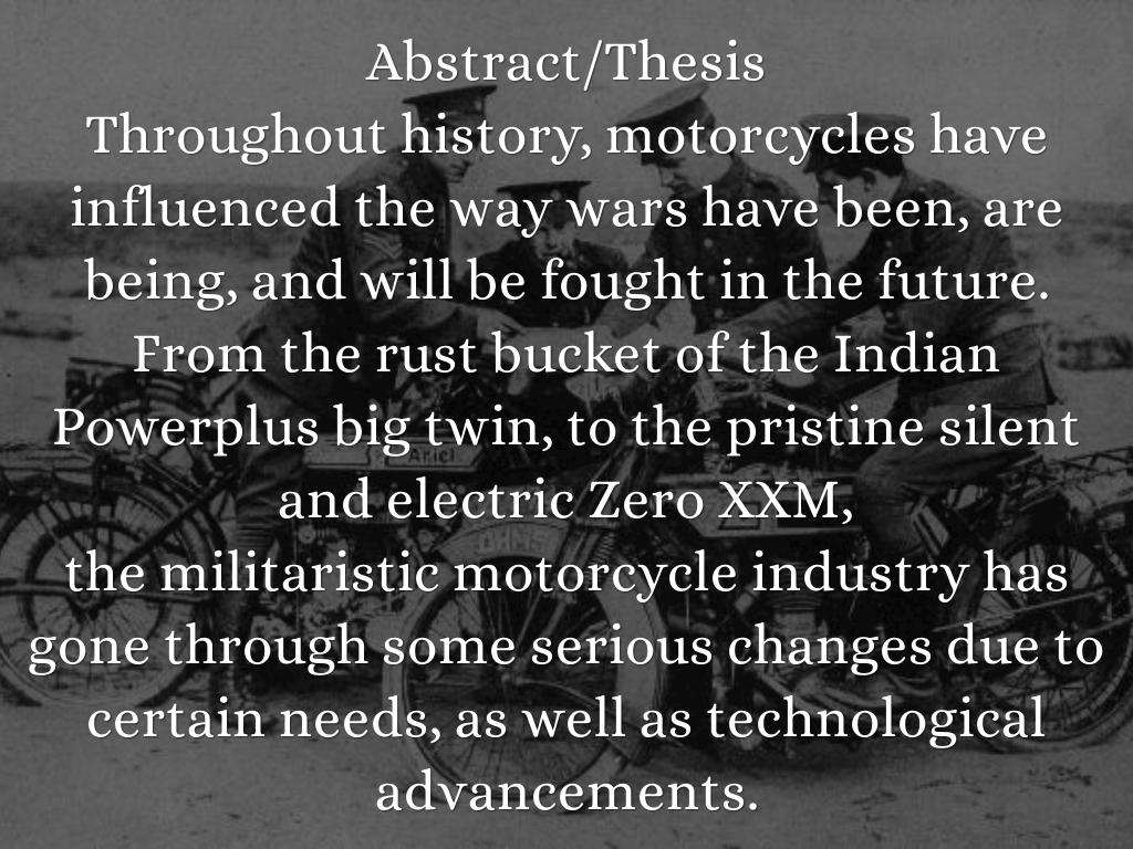 the militaristic motorcycle industry has gone through some serious changes due to certain needs, as well as technological advancements.