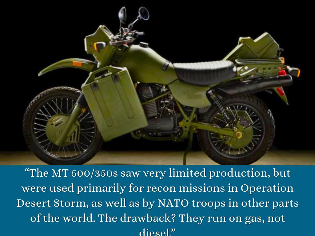 “The MT 500/350s saw very limited production, but were used primarily for recon missions in Operation Desert Storm, as well as by NATO troops in other parts of the world. The drawback? They run on gas, not diesel.”