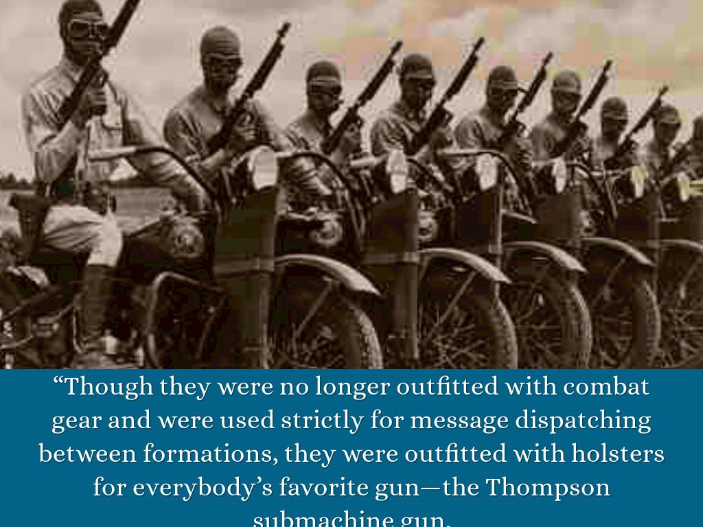 “Though they were no longer outfitted with combat gear and were used strictly for message dispatching between formations, they were outfitted with holsters for everybody’s favorite gun—the Thompson submachine gun.