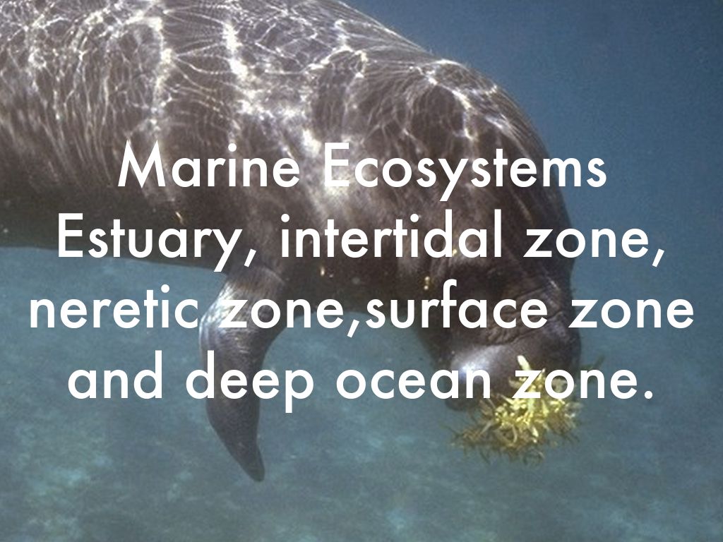 Estuary, intertidal zone, neretic zone,surface zone and deep ocean zone.