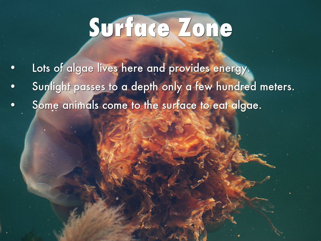 Algae and coral reefs form here and provide energy.