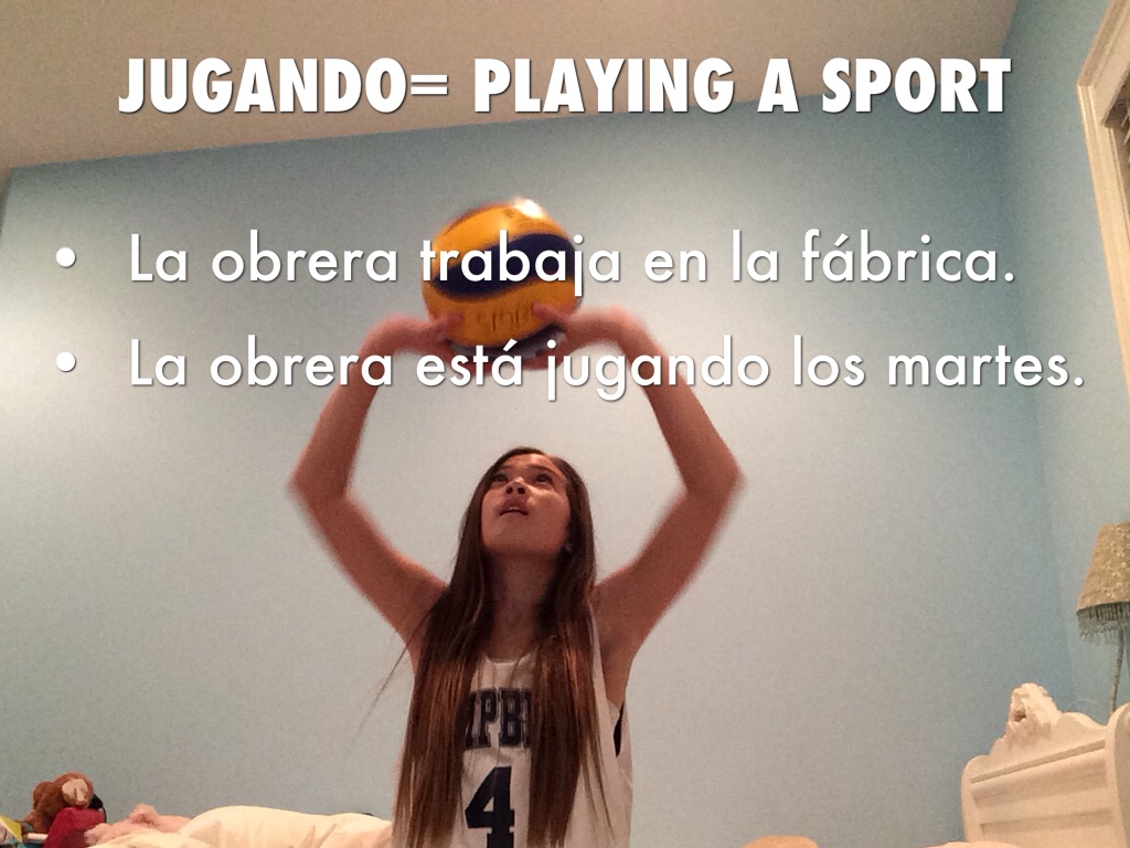 JUGANDO= PLAYING A SPORT