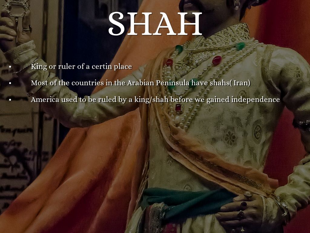 Most of the countries in the Arabian Peninsula have shahs( Iran)