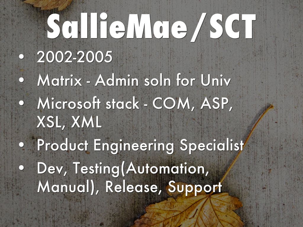 • 2002-2015 - SunGard/SCT/SallieMae